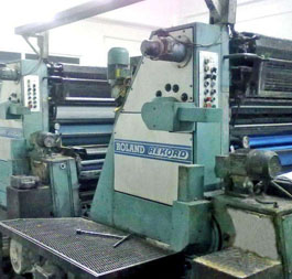 德国罗兰对开四色印刷设备,快速装版,自动清洗墨路,串墨辊水冷。